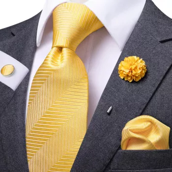 Luxury Gold Yellow Striped Silk Necktie with Matching Accessories