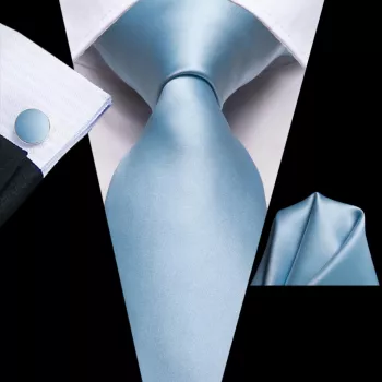 Sky Blue Silk Tie with Matching Handkerchief & Cufflinks