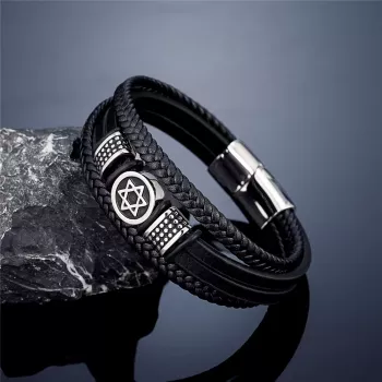 Retro Norse Star of David Leather Bracelet for Men – Stainless Steel Amulet