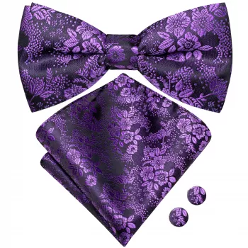 Purple Floral Silk Bow Tie, Pocket Square & Cufflinks Set for Men