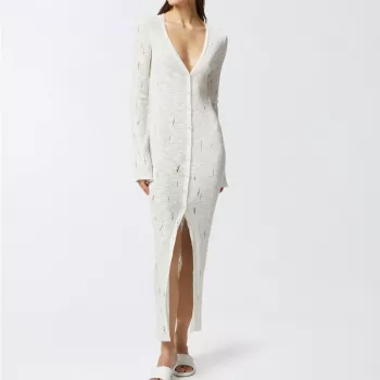 French-Style Winter Knit V-Neck Shawl Dress for Women