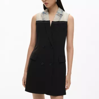 Desigual Women’s Multicolor Wrap Dress with Denim Collar
