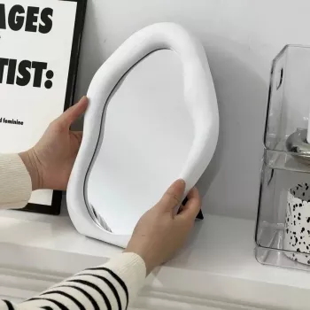 Chic Irregular Acrylic Mirror with Wooden Stand