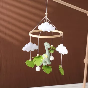 Felt Dinosaur Baby Bed Bell - Wooden Mobile Music Rattle Toy for Newborns