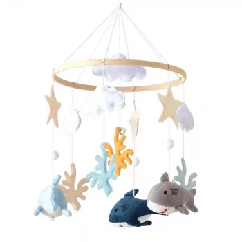 Soft Felt Whale Baby Crib Mobile with Rattle and Music Box – Infant Crib Hanging Toy