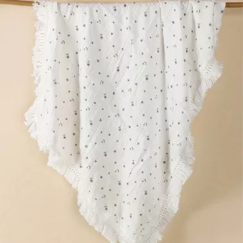 Organic Cotton Moon & Star Print Baby Blanket - Soft & Versatile for Stroller & Bath Time