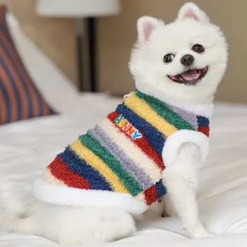 Winter Plush Pet Hoodie – Soft, Warm & Colorful Striped Outfit for Dogs & Cats