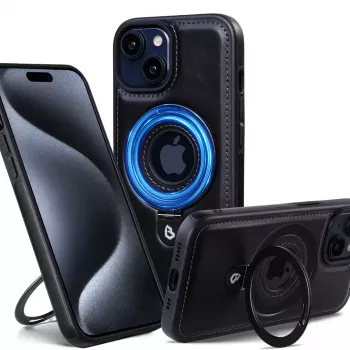 MagSafe Ring Holder Kickstand Leather Phone Case