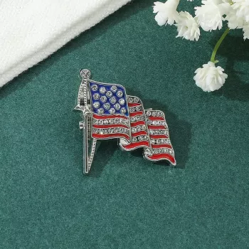 Rhinestone American Flag Brooch Pin – Sparkling Patriotic Independence Day Badge