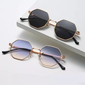 Women Retro Polygonal Metal Sunglasses