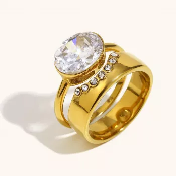 Oval Zircon Double Band Gold Plated Stacked Ring for Women