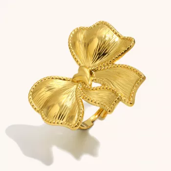 Textured Bow Open Ring in 18K Gold Plated Stainless Steel