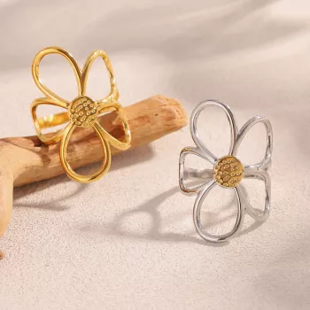 Mixed Color Floral Line Gold-Plated Stainless Steel Ring for Women