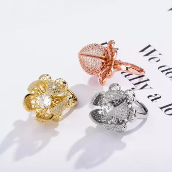 Chic 18K Gold-Plated Stainless Steel Adjustable Flower Ring