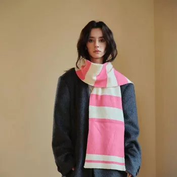 Women's Winter Pink & White Striped Fleece Scarf – Thick Warm Fashion Wrap