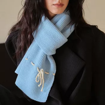 Cozy Korean Style Rope Bow Knitted Scarf for Women – Winter Warm Neck Wrap