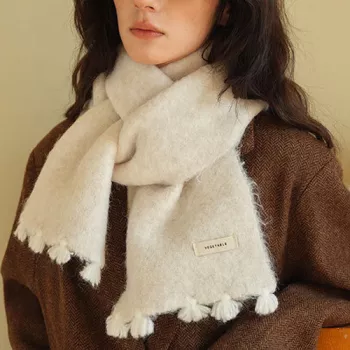 Soft Thickened Winter Scarf with Handmade Tassels