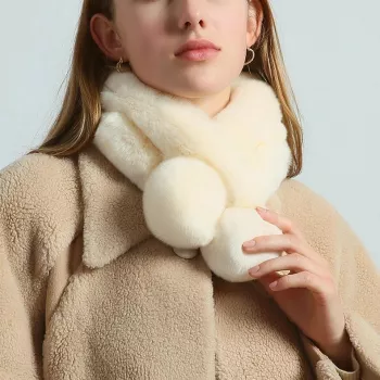 Women's Winter Real Rex Rabbit Fur Scarf with Pom Pom