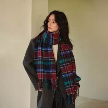Women's Large Soft Plaid Cashmere Winter Scarf with Tassel Wrap