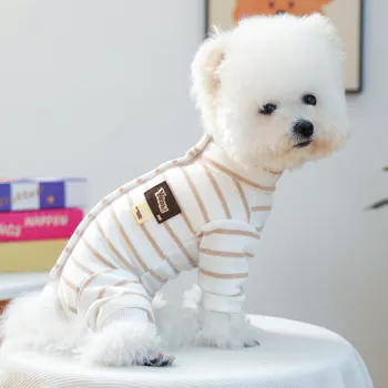 Striped Fleece Dog Girl Overall Warm High Neck Romper