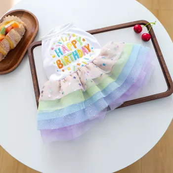 Fancy Birthday Elegant Dog Vest with Colorful Tutu Skirt – Pet Party Dress