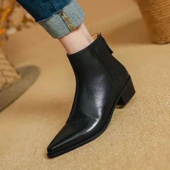 Women's Genuine Leather Pointed Toe Ankle Boots