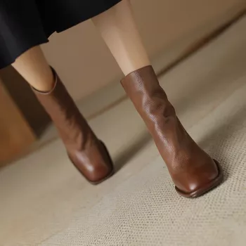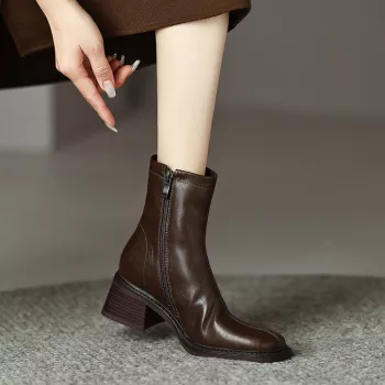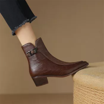 Retro Brown Leather Ankle Boots for Women
