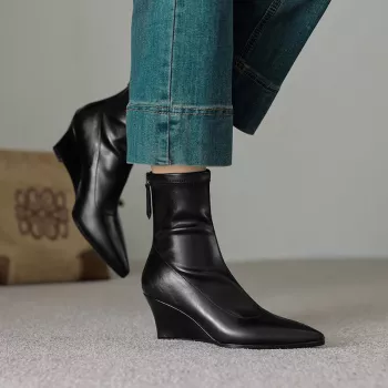 Winter Women's Pointed Toe Wedge Ankle Boots