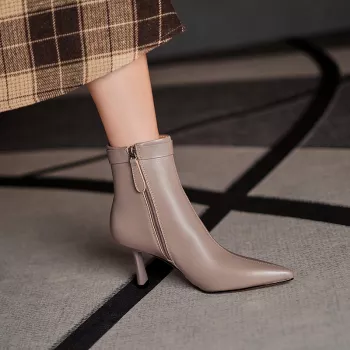 Autumn Winter High Heel Leather Short Boots for Women