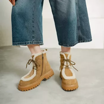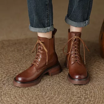 Women’s Winter Lace-Up Chunky Heel Split Leather Boots