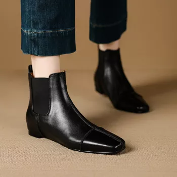 Winter Women Cow Suede Leather Boots with Square Toe and Chunky Heel