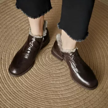 Winter Women’s Genuine Leather Kitten Heel Boots with Plush Lining and Zipper Closure