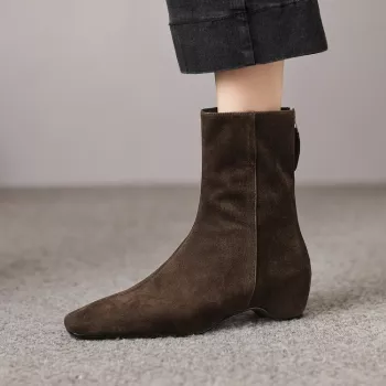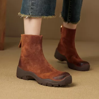 Winter Suede Leather Chunky Heel Zipper Boots for Women
