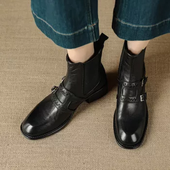 Winter Women’s Chelsea Boots with Chunky Heel & Belt Buckle