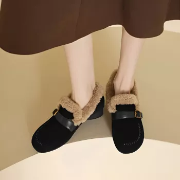 Winter Women Loafers Suede Leather Chunky Heel Slip-On Shoes