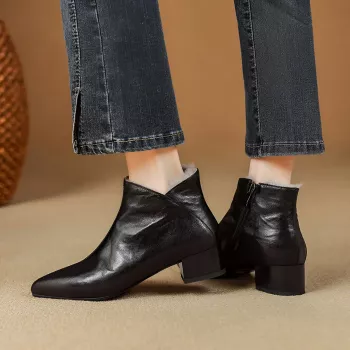 Winter Women Boots Genuine Leather Chunky Heel Zip Ankle Boots Casual Daily Shoes