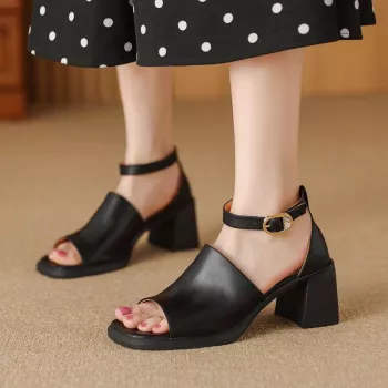 Elegant Summer Leather Sandals with Flower Shaped Heel