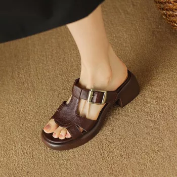 Summer Women's Fashion Weaving T-Strap Roman Sandals