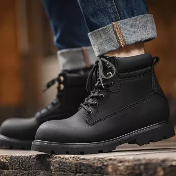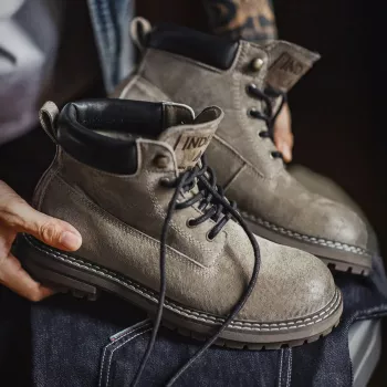 Men’s Low Top Leather Work Boots with Thick Soles – Casual British Style