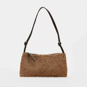 Beaded Shoulder Bag – Chic Handbag with Knot Strap & Zipper Pocket