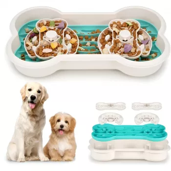Bone Shaped Interactive Pet Slow Feeder Puzzle Double Bowl