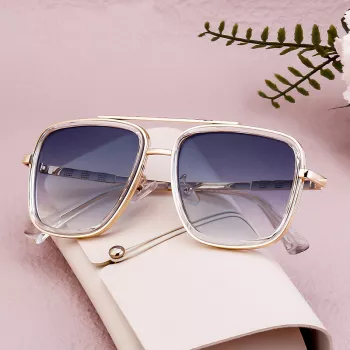 Oversized Metal Round Sunglasses for Women - UV400 Protection