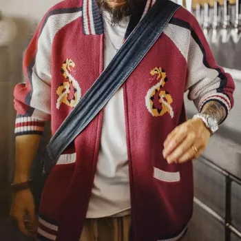 Vintage Yokosuka Embroidered Knit Baseball Jacket for Fall & Winter