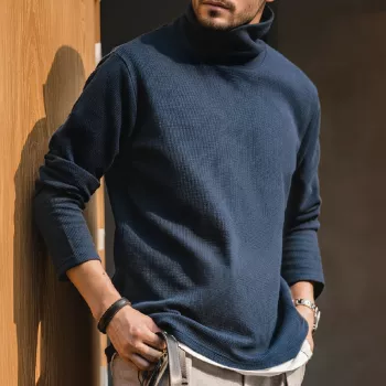 Men’s Vintage Waffle Turtleneck Knit Sweater – Warm Casual Pullover