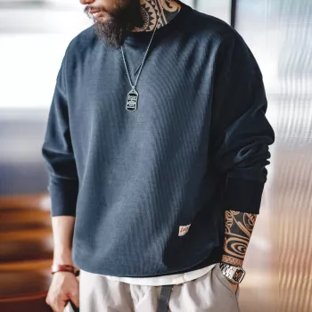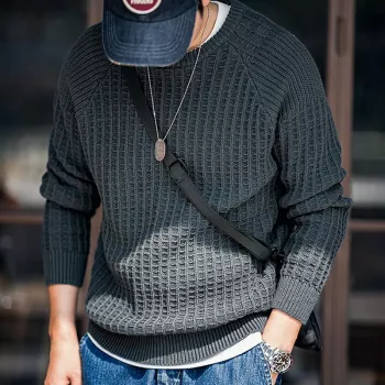 Men’s Autumn Waffle Knit Crewneck Sweater – Casual Loose Fit Pullover