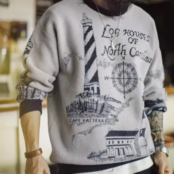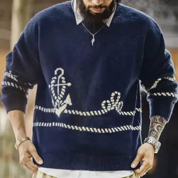 Heavyweight Lighthouse Knit Crewneck Sweater for Men