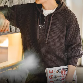 Men’s Half-Zip Knit Hoodie Sweater for Fall and Winter Streetwear