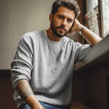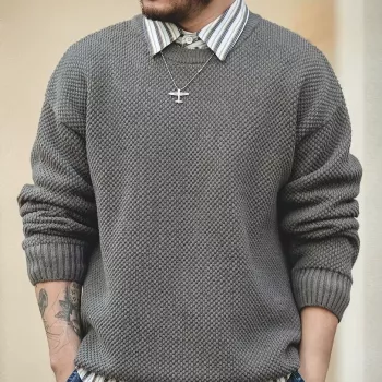 Men’s Vintage Heavyweight Pineapple Knit Sweater – Grey O-Neck
