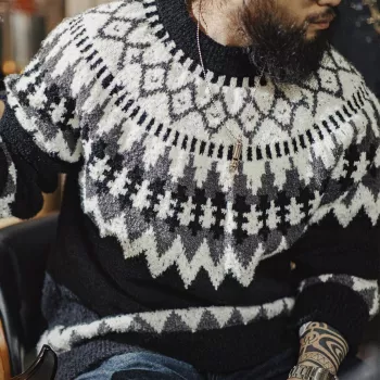 Vintage Fair Isle Heavyweight Icelandic Knit Sweater for Men