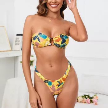 Floral Ruffle High-Waist Bikini Set with Push-Up Support